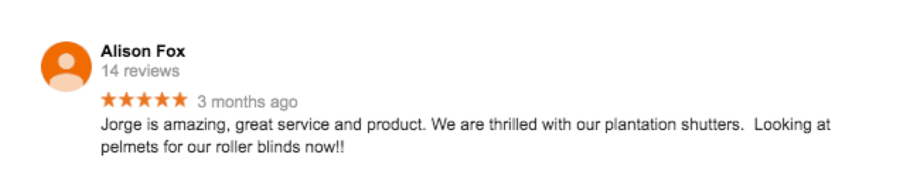 If you read up online about the window furnishing industry - you may be shocked to see just how many negative reviews people are writing… about other companies. Here’s what they are saying about us: