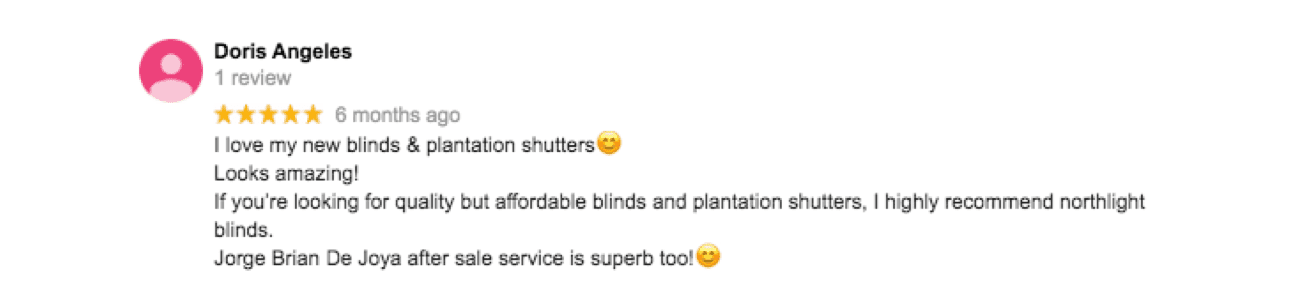 I love my new blinds & plantation shutters. Looks amazing! If you're looking for quality but affordable blinds and plantation shutters, I highly recommend northlight blinds. Jorge Brian De Joya after sale service is superb too!??